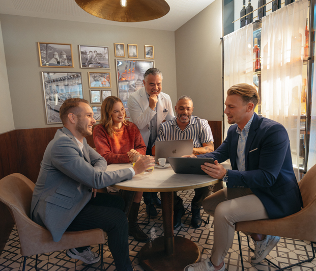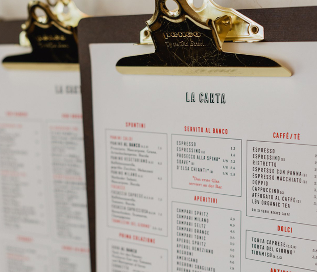 Die italienischen Klassiker Zum Caffé gibt es hausgemachte Torten, Cornetti und Brioche. Der venezianische Küchenchef serviert warme Gerichte, den Aperitivo mit italienischen Klassikern wie Aperol Veneziano und Campari Milano begleiten Antipasti, Panini und Tramezzini.